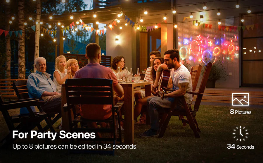 Mobile APP or remote control to customize the patterns, texts, GIFs, and screen effects, DIY the color, brightness and the dynamic scenes that move with the music. Suitable for parties, cozy nights and various festival events, bringing you a romantic and cool atmosphere.
