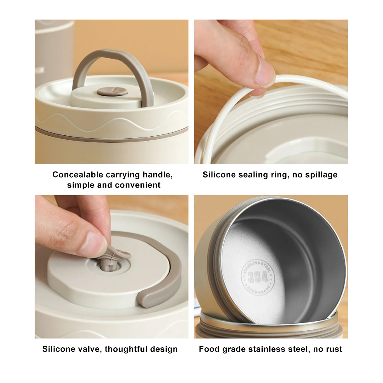 The 304 stainless steel thermal chamber inside each bowl acts like a mini thermos — but made for actual meals, not just liquids.